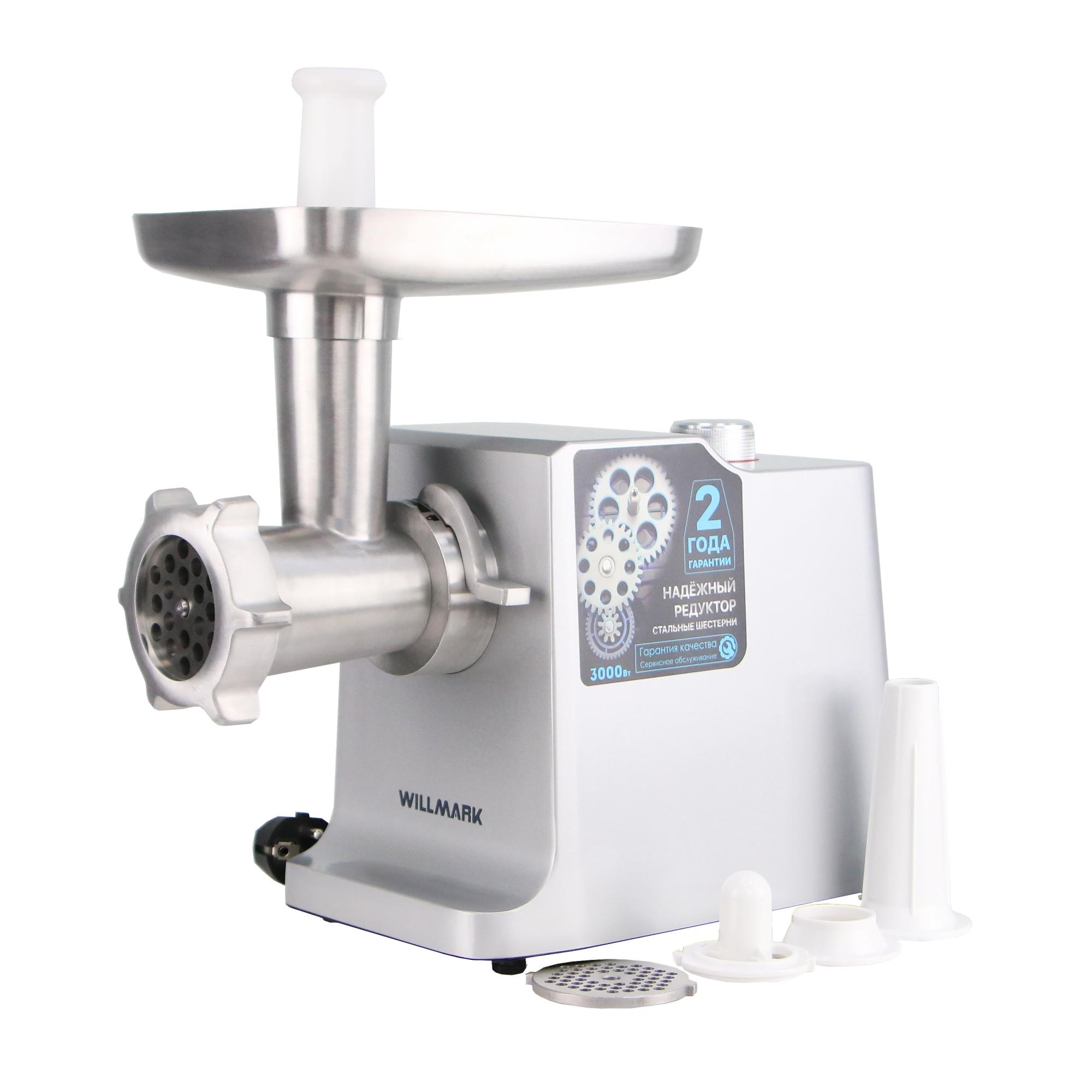 Электрическая мясорубка WILLMARK WMG-3080S с цельнометаллическим корпусом обладает расширенным набором функций и аксессуаров.