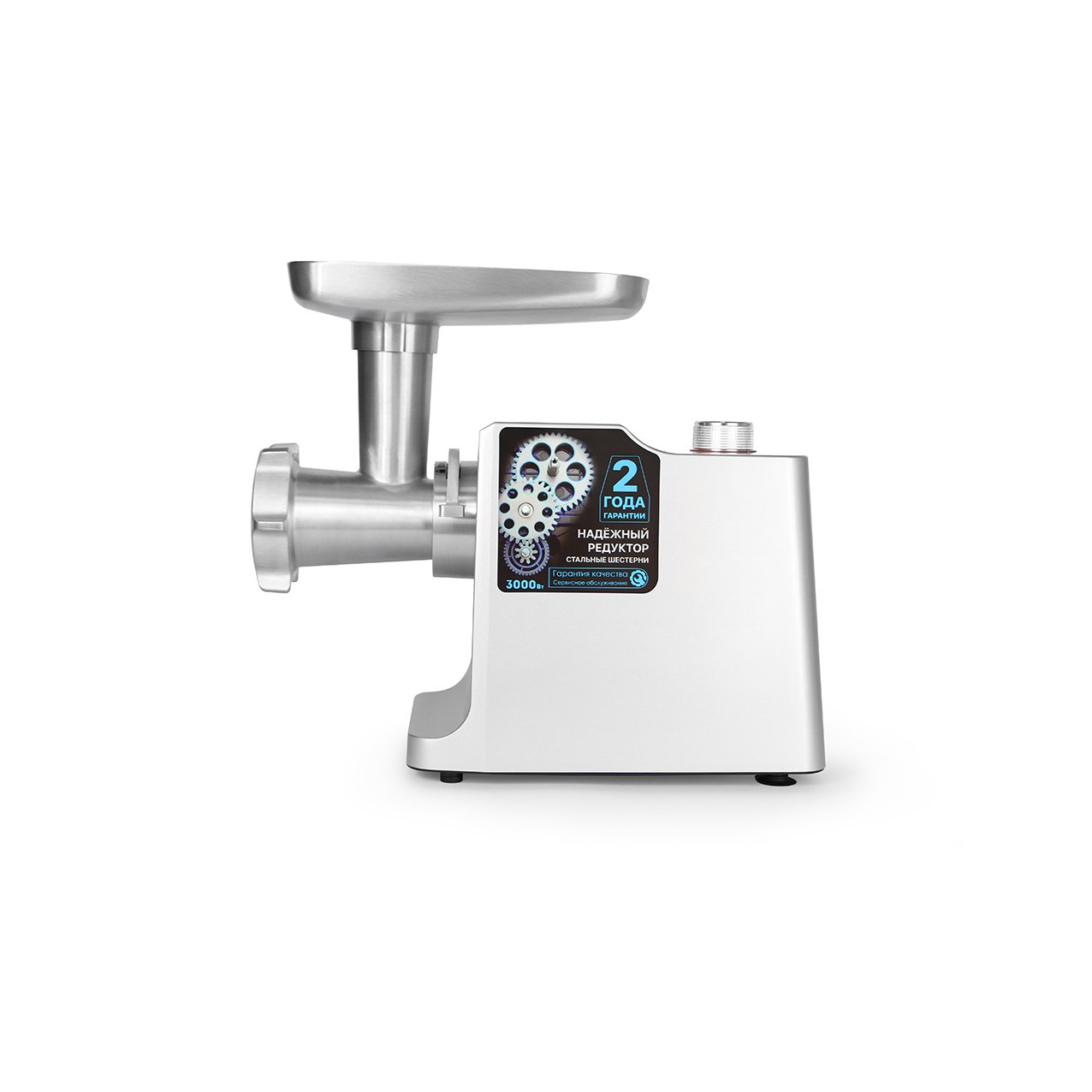 Привод мотора и шестерни редуктора выполнены из металла во избежание проворота и вывода из строя мясорубки.