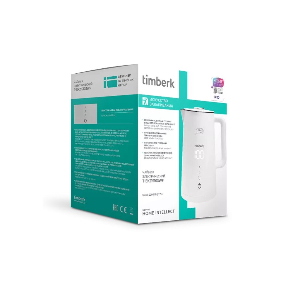 Умный электрический чайник Timberk T-EK21S103WF упростит процесс приготовления напитков. Чайник оснащен дистанционным управлением, с помощью которого можно использовать голосовые команды, настраивать расписание и регулировать температуру нагрева с шагом в 1°. Функция поддержания температуры воды до 12 часов сохранит вкус и состав воды. Двойные стенки делают внешнюю поверхность чайника безопасной для прикосновения. Чайник оснащён системой защиты от сухого кипячения, если в чайнике нет или мало воды, он автоматически отключится.