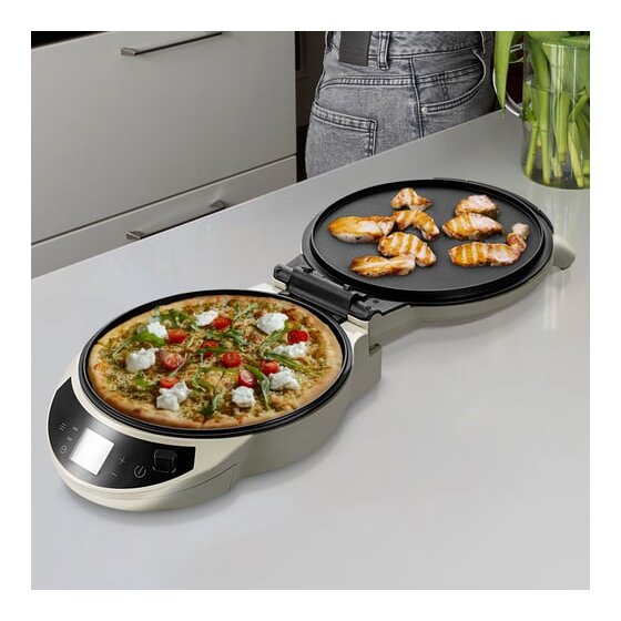 За счет нагревательных элементов в обеих панелях и небольшого пространства между панелями нагрев происходит быстро и равномерно. Поэтому блюда не пригорают снизу или сверху и хорошо пропекаются внутри. Благодаря равномерному нагреву пицца получается сочной со слегка хрустящей корочкой.