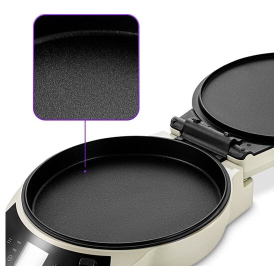 Антипригарное покрытие помогает не прилипать тесту и другим продуктам в процессе приготовления и позволяет готовить с минимальным количеством масла. Также антипригарное покрытие панелей облегчает чистку.