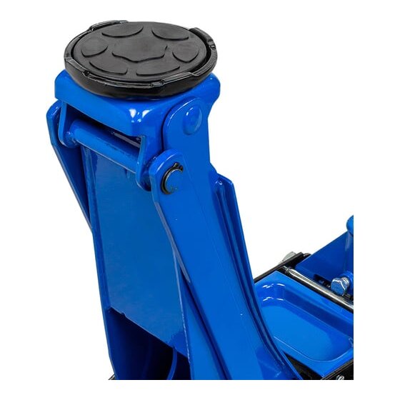 Домкрат оснащён двумя поршнями, обеспечивающими равномерное распределение нагрузки и стабильность при подъёме. Специальная педаль у основания ручки ускоряет процесс подъёма, а прорезиненная накладка на рукоятке повышает комфорт при работе. Конструкция включает 2 фиксированных и 2 поворотных колеса, что обеспечивает отличную мобильность. Предохранительный клапан гарантирует безопасность эксплуатации.