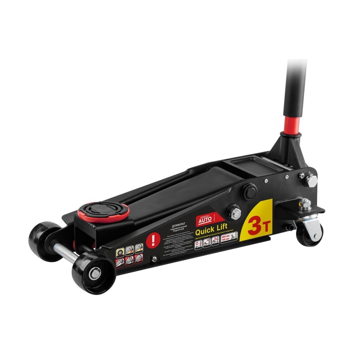 Гидравлический подкатной домкрат STARTUL с быстрым подъемом 3 т Auto ST8013-03 - профессиональный домкрат с ручным приводом, предназначенный для поднятия грузов на высоту. Отличается простотой обслуживания и надежностью в эксплуатации, позволяет при небольшом рабочем усилии осуществлять плавный подъем груза и его точную фиксацию на заданной высоте. Модель оснащена двухштоковым механизмом быстрого подъема (QUICK LIFT) для поднятия опорной площадки на максимальную высоту за 7 полных качков рукоятью.
