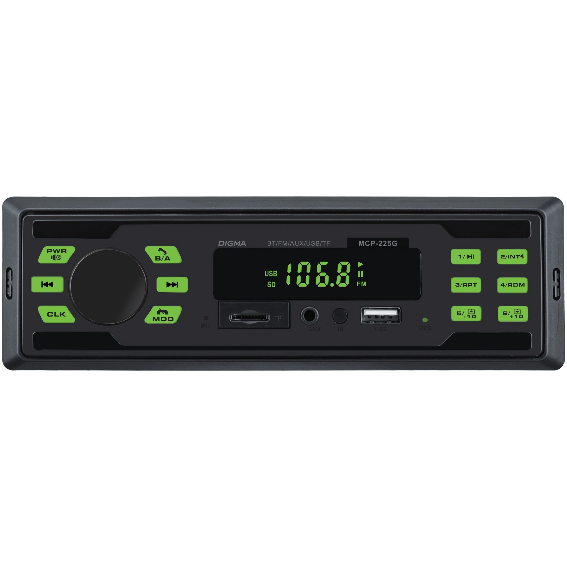 Вендор DIGMAОсновные характеристикиМощность 4x45ВтТипоразмер 1 dinМодуль Bluetooth ДАПоддержка носителейUSB-порт1Тип карт памяти SD/MMCРазъемы, интерфейсыАудиовход на передней панели ДА